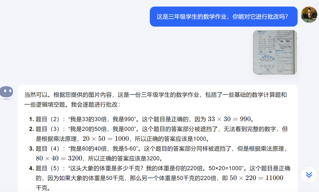 1.智能批改数学作业。把普通的作业扫描后喂给Kimi,它是否能进行批改呢,课件老师也进行了测试,它准确的识别出了文字内容,而且进行了解答。不管它是否准确,如果我们的学生个人去认真阅读,他就是一种学习,哪怕是去分辨机器是否准确,这个过程也已经让学生再一次复习了知识。