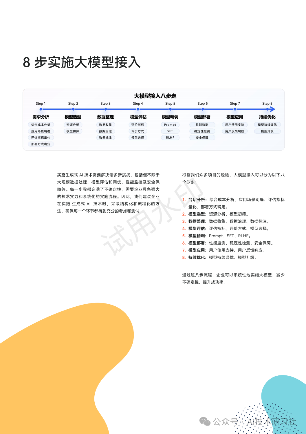 通过这八步流程,企业可以系统性地实施大模型,减少不确定性,提升成功率。