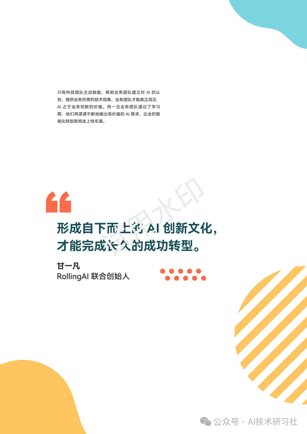 新技术的引入要配合人员的培训与流程的变革,才能真正将其转化为业务价值。生成式AI的价值实现,不仅取决于技术能力本身,更取决于组织的适应和运用能力。这就需要我们在部署新技术的同时,推动人员技能的提升和流程的优化,形成人机协同的新运营方式,以最大限度地发挥生成式AI的潜力。