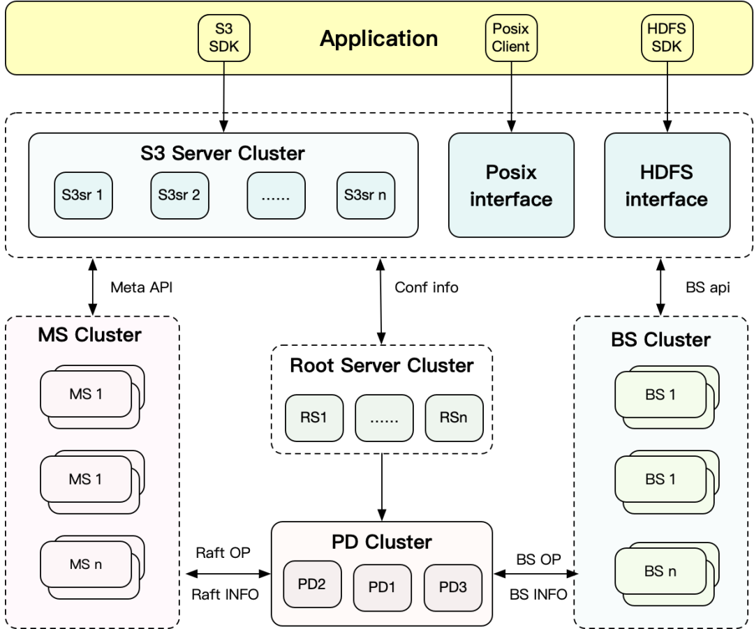 • BS数据存储引擎:提供对象存储的数据分片存储。