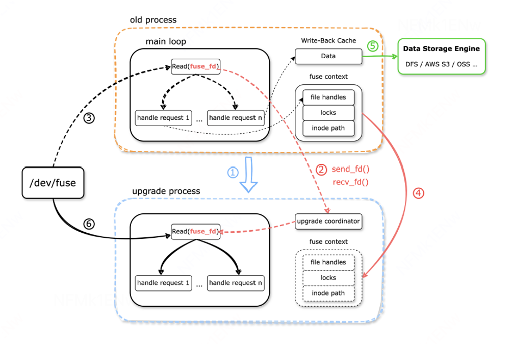 随着OrangeFS POSIX文件系统在线上的铺量,已经达到了数万个POSIX Client,对于版本管理也提出了新的要求,需要支持热升级,避免版本管理导致的业务IO中断。