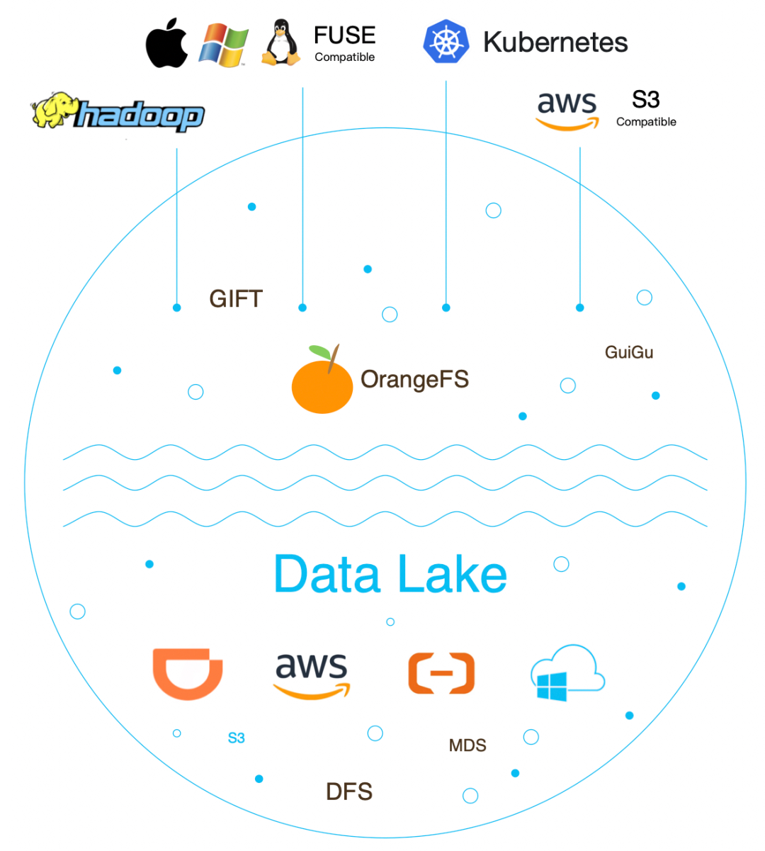 OrangeFS 新一代存储系统设计吸收探索方案的经验,同时研究并吸取了 Ceph、HDFS、CubeFS、JuiceFS、seaweedfs(Facebook haystack思想)等开源的设计思想,结合GIFT对象存储等原架构的设计思想和线上实践经验基础上演进。