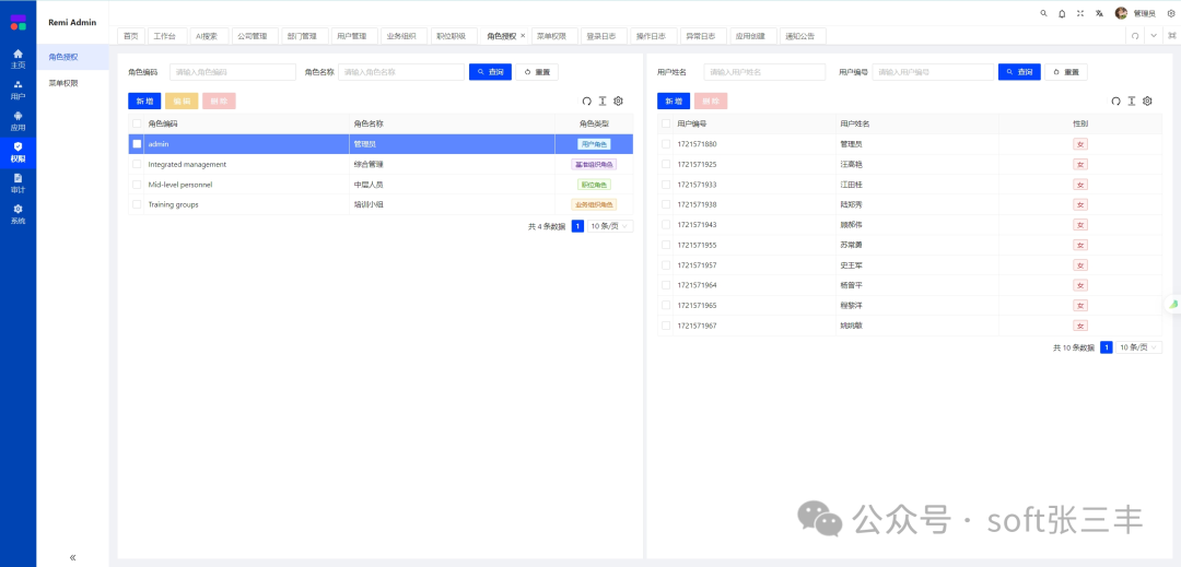- 角色管理:负责定义和管控用户角色,每个角色代表了一系列预设的权限组合。