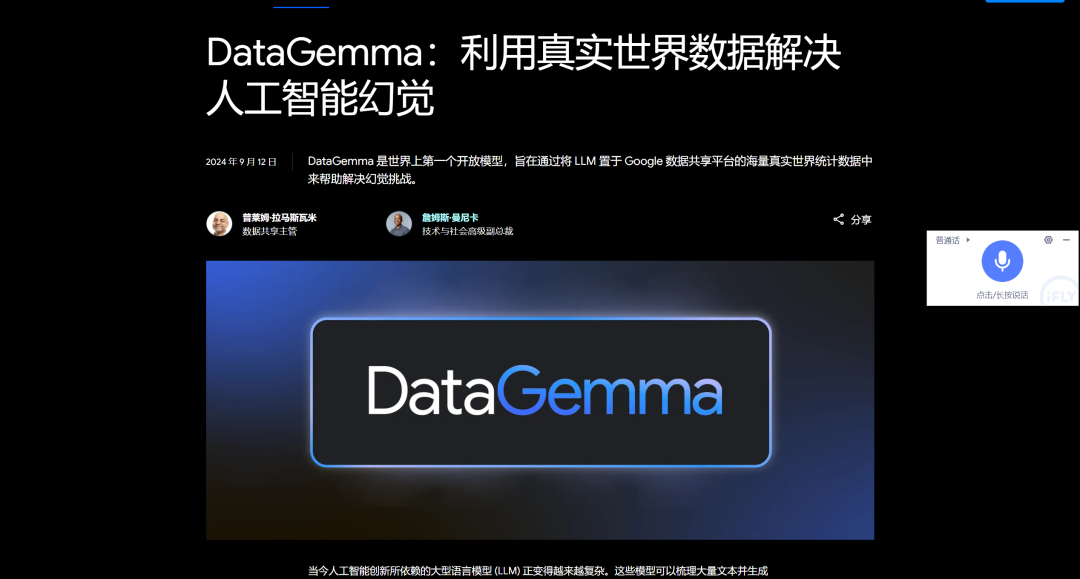 在这篇文章中,我将向你介绍 Google 推出的一款新模型家族,名为 Data Gemma。 Data Gemma 是世界上第一个设计来解决幻觉问题的开源模型,旨在通过 Google 的 Data Commons 中庞大的真实世界统计数据,为大规模语言模型提供依据。
