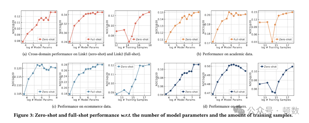 AnyGraph 的性能已经通过对 38 个不同图数据集进行的广泛实验进行了严格评估,这些数据集涵盖电子商务、学术网络、生物信息等领域。这些实验的结果凸显了 AnyGraph 卓越的零样本学习能力,证明了其在具有显着分布变化的各种图域中有效泛化的能力。例如,在 Link1 和 Link2 数据集中,AnyGraph 的recall@20 分数分别为 23.94 和 46.42,明显优于现有模型。此外,AnyGraph 的性能遵循缩放定律,模型的准确性随着模型大小和训练数据的增加而提高。这种可扩展性强调了模型的稳健性和适应性,使其成为各种图形相关任务的强大工具。此外,专家路由机制的轻量级特性确保 AnyGraph 可以快速适应新的数据集,而无需进行大量的重新训练,使其成为现实应用程序的实用且高效的解决方案。