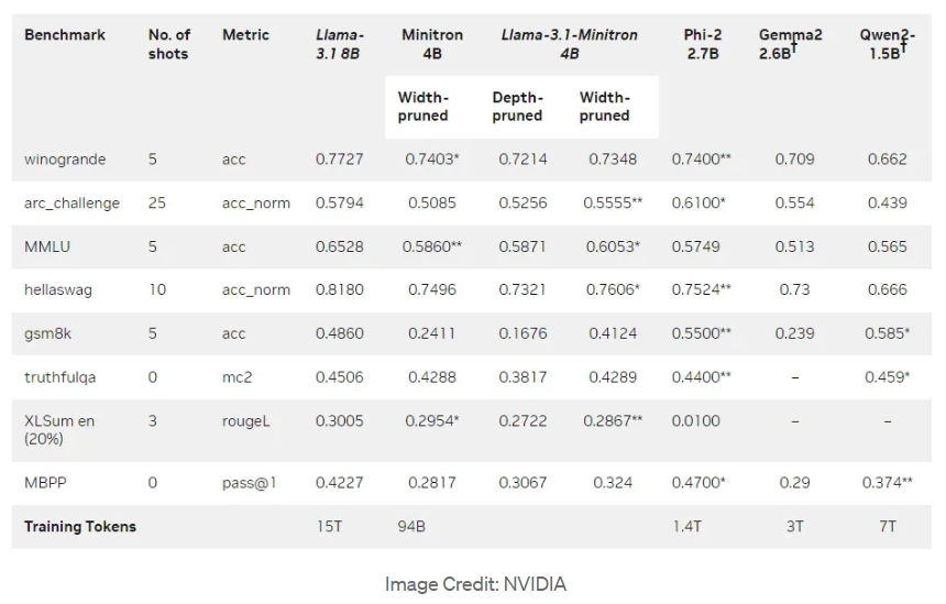 Minitron将这些技术应用于Llama 3.1模型家族,其中包括从405B到8B参数的模型。具体来说,他们专注于将8B模型蒸馏(distill)为更高效的4B版本。