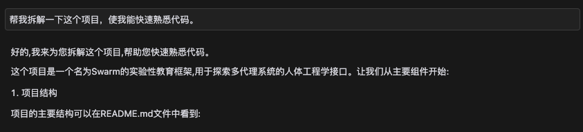就在昨天,openai 出乎意料的开源了一款实验性的智能体开发框架 swarm。刚把 metagpt 玩顺了没多久,openai 又整了这么一出,看来智能体的热潮一时半会是下不去了。今天我就用 cursor 来帮大家快速的拆解一下 swarm 的源码,让大家能够快速的了解 swarm 的设计和实现。