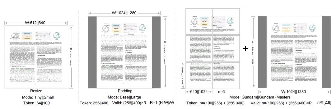 多分辨率支持:适配不同压缩比需求   Base/Large模式通过“ padding 保留宽高比”,有效token数按公式下面公式计算(避免无效token浪费)。 MoE解码器解码器使用的是DeepSeek3B-MoE,由3B参数的MoE模型,包含64个routed experts和2个shared experts。推理时仅激活6个routed experts+2个shared experts,实际激活参数约570M(仅为3B模型的19%)。这样做既保留3B模型的文本生成能力,又将推理速度提升至“500M小模型”级别,适合大规模部署。 数据1. OCR 1.0数据OCR 1.0数据和前面的vary、got-ocr数据构建相似,主要用于训练模型识别传统OCR场景(文档、自然场景文本)。 构成如下: - 文档数据:30M页多语言PDF(100种语言,中英占25M页),含“粗标注”(fitz工具提取,教模型识别文本)和“细标注”(2M页中英,用PP-DocLayout+MinerU2.0标注布局+文本,教模型理解排版);