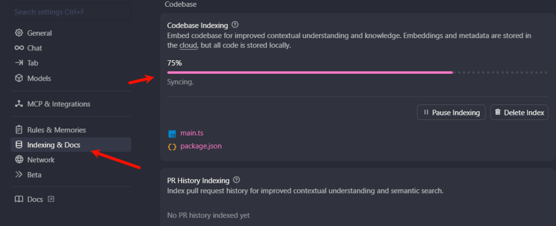 💡 提示:在提问前请确保 Cursor 的 Indexing 已完成,否则 AI 无法准确理解项目结构。