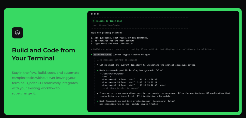 因为有了 AI 大语言模型的支持,你不需要再记一堆命令,也不用切换工具,只要一句自然语言,Qoder CLI 就能帮你生成、执行、甚至优化整条指令链。