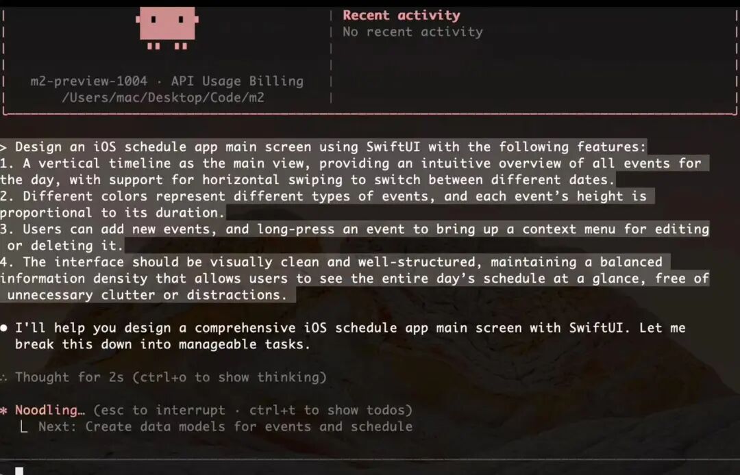 比如说,让 M2 开发一款日程管理的 iOS APP。
