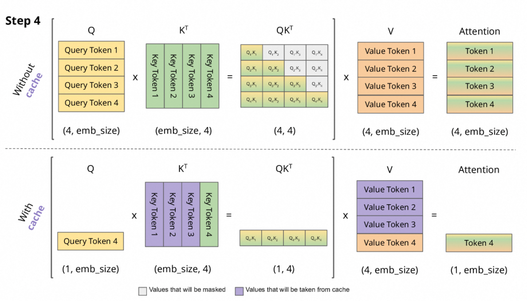 KVCache 正是为解决这一问题而生:在首次计算每个 token 的 K 和 V 后将其缓存,后续生成步骤直接复用,从而避免重复的前向传播计算。这一优化显著降低了推理延迟、提升了吞吐效率,已成为现代大语言模型实现高效推理的基础技术。
