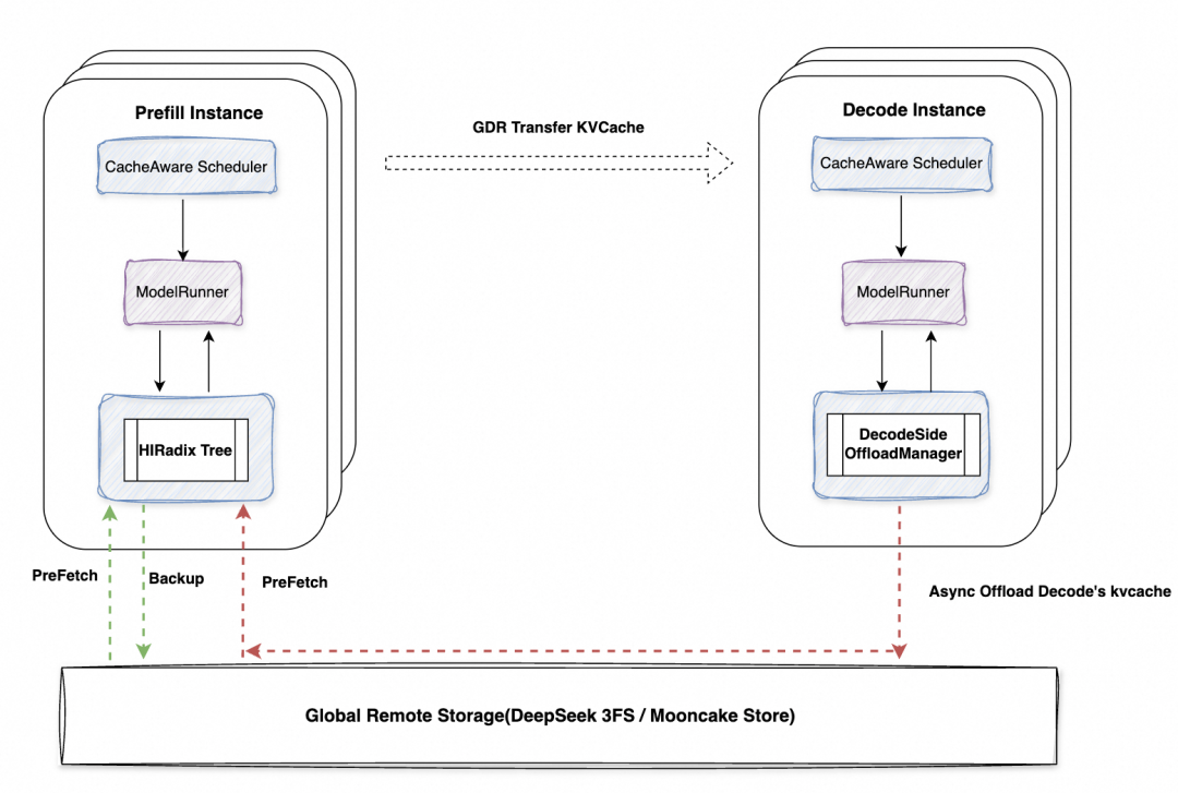 1. 高速直传:Prefill 与 Decode 节点之间通过 GDR(GPU Direct RDMA)高速通道实现 KVCache 的零拷贝直接传输