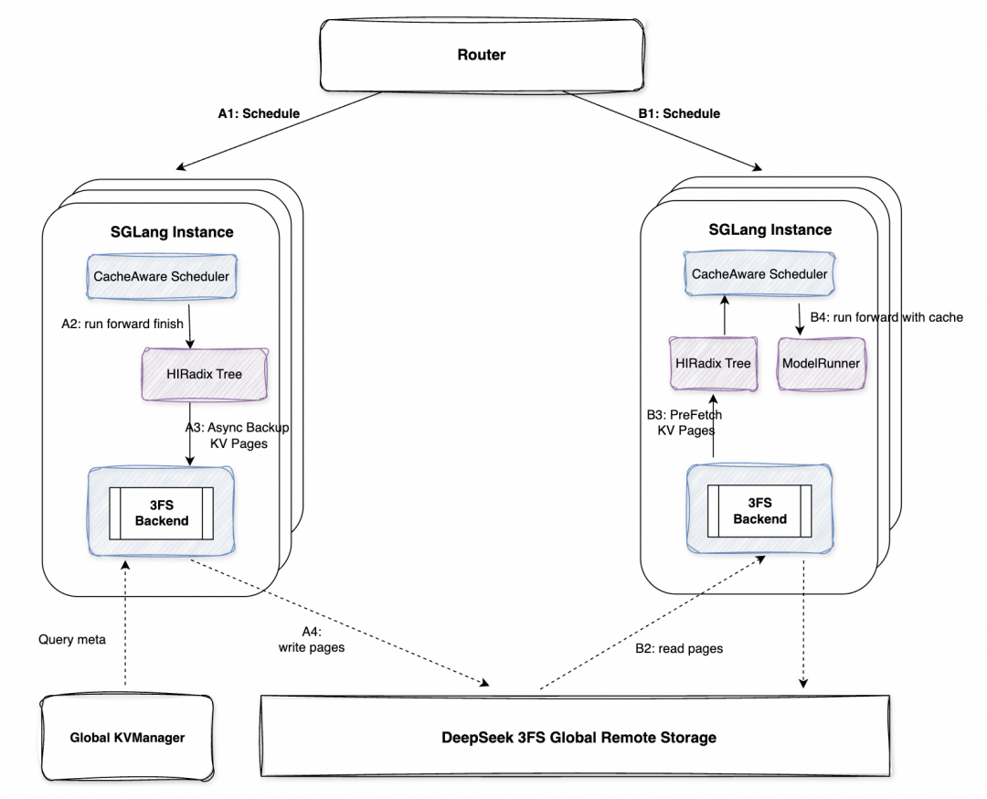 Tair KVCache团队将 3FS 集成至 SGLang HiCache 体系,为 KVCache 提供高带宽、低延迟的 Offloading 通道,同时实现跨节点的全局缓存复用能力。