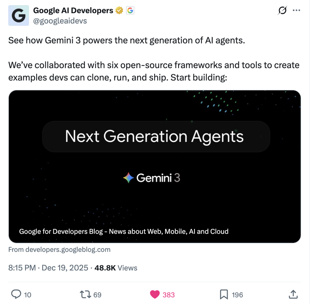 Google 官方博客也特别提到了 Eigent,展示了我们如何通过多智能体架构,把 Gemini 3 Pro 应用于复杂的企业级浏览器自动化任务中,实现真正的落地执行,也被Gemini官方推荐为“下一代 AI Agents”的代表之一。