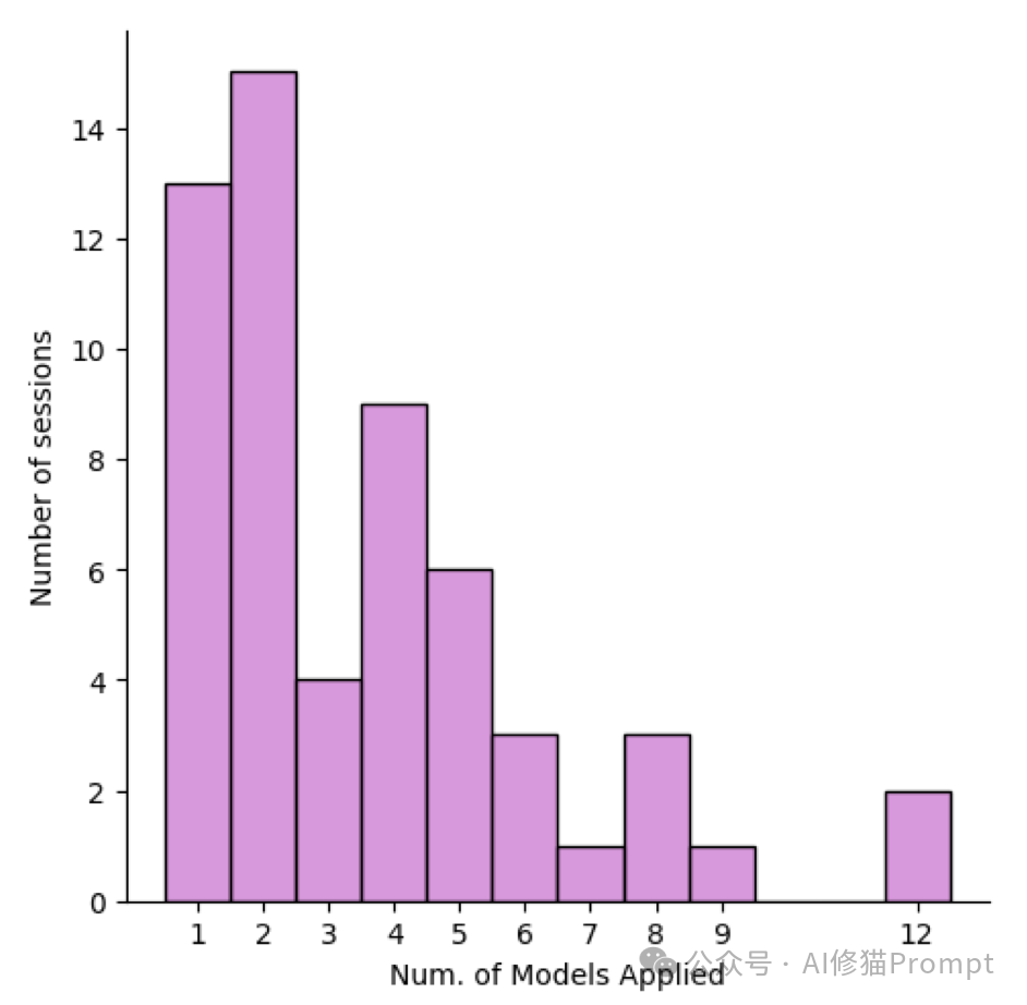 考虑到模型变化的频率,研究人员深入研究并分析了在单次提示会话中使用了多少个模型。