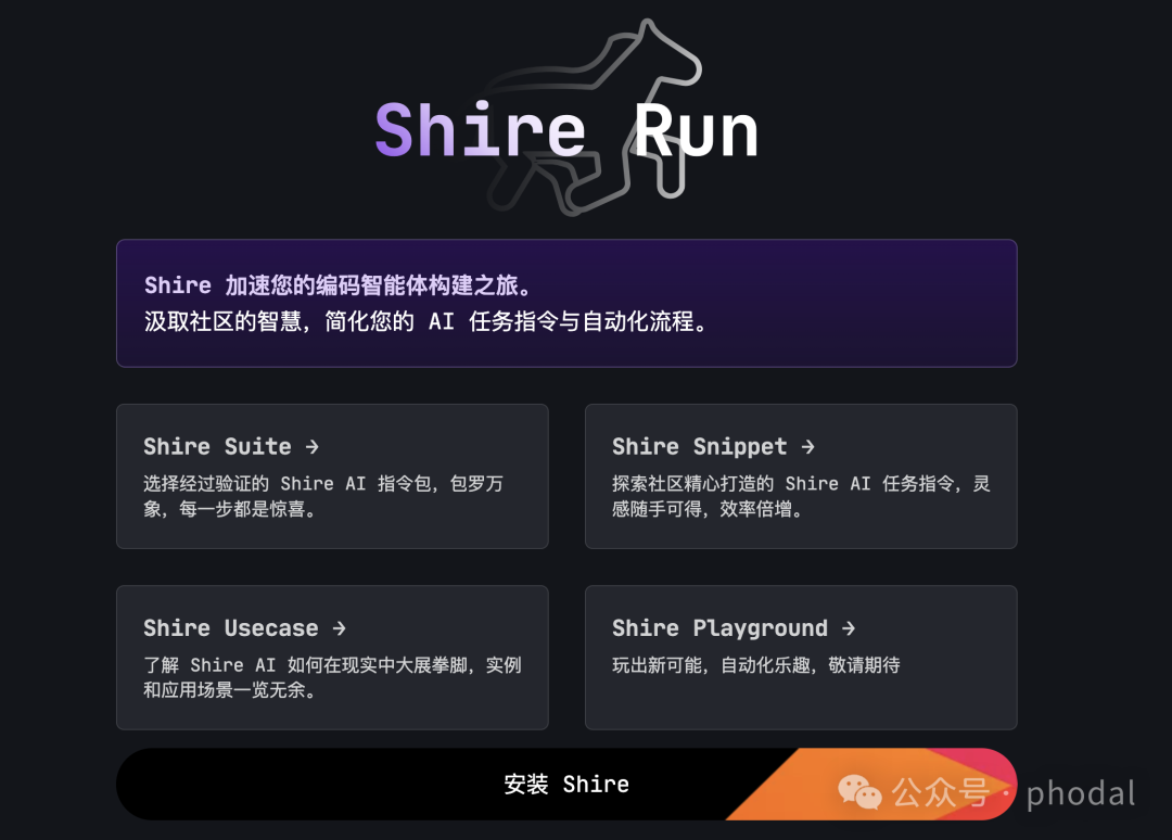总的来说,Shire Run 的创建是为了探索 Prompt 的无限可能性,突破传统的提示词范畴,将其视为可执行、可共享的智能体代码。这一理念让我们看到了 Prompt 在工程化和智能化方向上的广阔前景,也赋予了开发者更大的自由度去定制和创造。