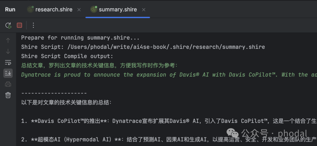 而与此同时,每个 Shire 代码都是 Shire 平台上的可执行程序。即你可以基于 Shire 的平台能力直接执行 Shire 程序,而 Shire 代码本身是一种带上下文的 Prompt 变体。