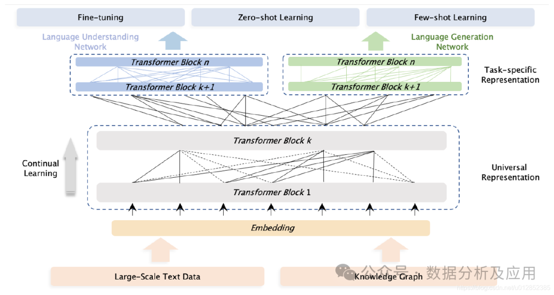 4. 微调:针对具体的下游任务,使用有标签的数据对预训练模型进行微调。通过调整模型的部分参数,使其能够更好地适应特定任务的文本数据,从而提高在任务上的性能。