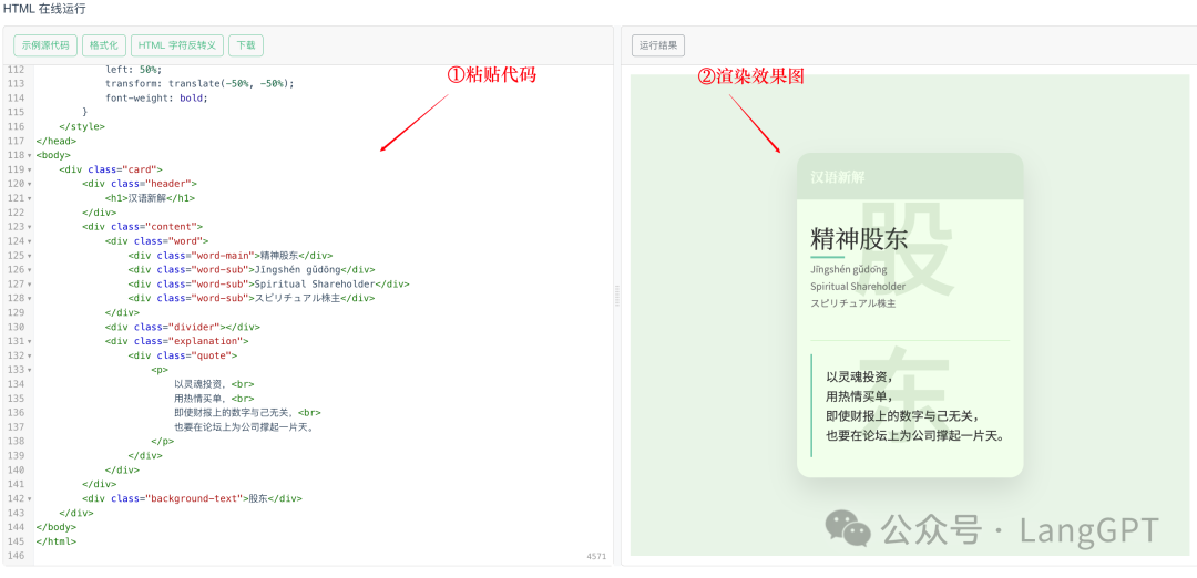 5.技术实现:指导AI直接输出完整的HTML代码,包括样式和内容,确保卡片样式的稳定性和美观度。