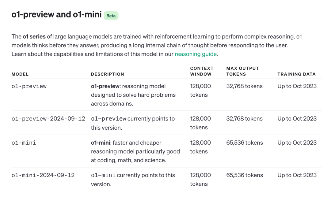 从训练数据,以及训练时间来看,o1-preview,o1-mini,4o,4o-mini的训练数据,都是截止到 2023 年 10 月(而更早的 gpt-4-0125 和gpt-4-turbo 则是截止到 2023 年 12 月)