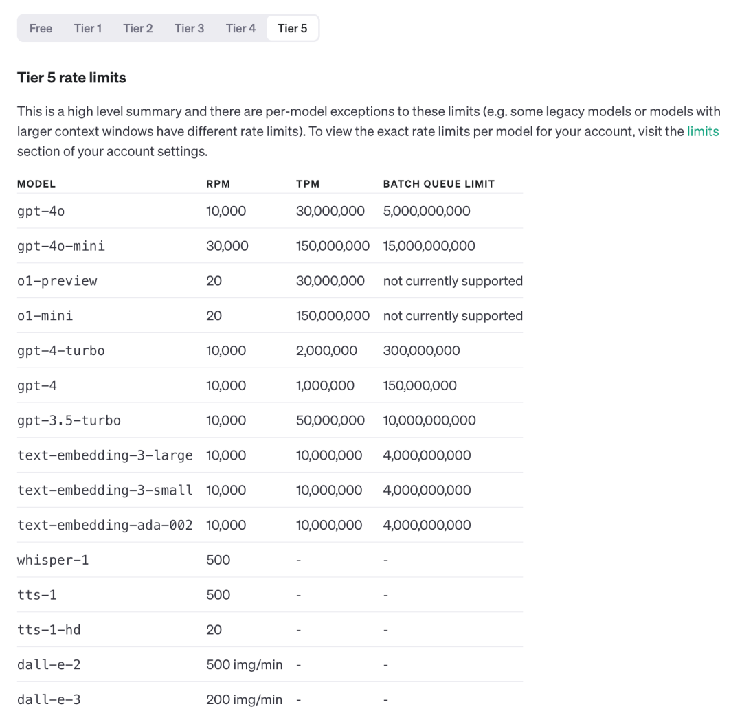• o1-preview:20 RPM,30,000,000 TPM