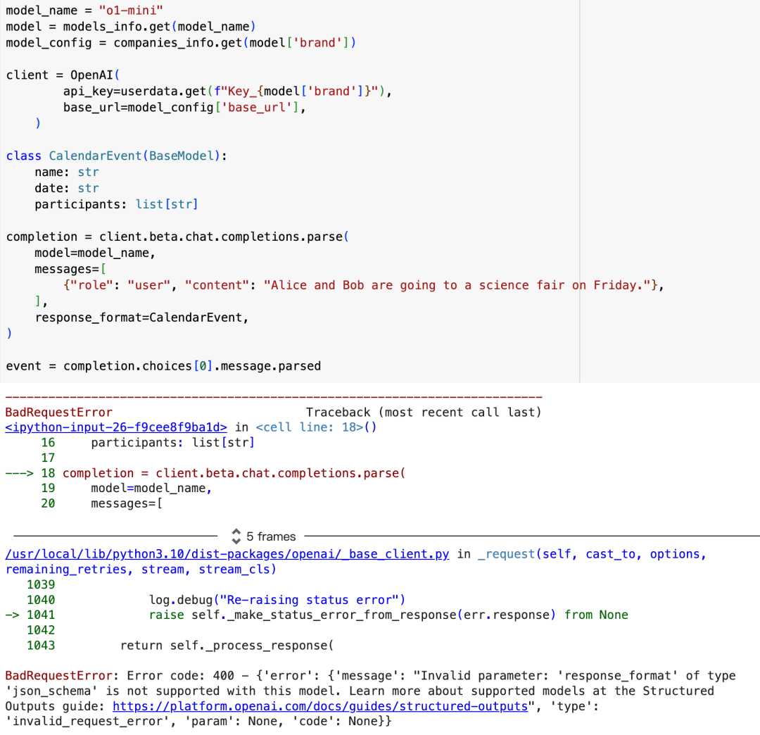 进行 structured 输出时,400 报错