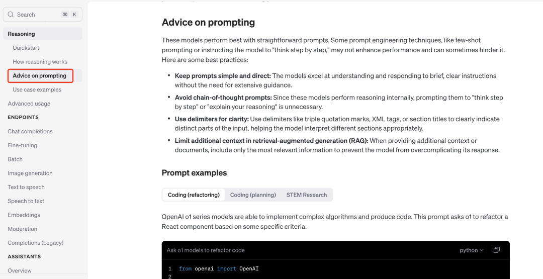 当你使用 o1 的时候,会发现文档中多了一项提示词建议。
