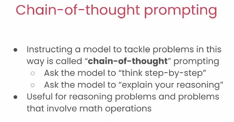 那在直接询问的基础上,Few-shot prompting的意思就是给几个相关的例子作为案例,让模型理解他需要输出的内容是什么。就比如下面同样的问题给到模型,但是不同的是在问问题之前给出了一个完整的案例告诉模型回答的模型。在这种情况下,小模型更有可能能够准确回答出问题。由此得出,在询问问题的时候,给出示范案例是能够显著提升模型输出效果的,尤其是在格式上有要求的情况下。