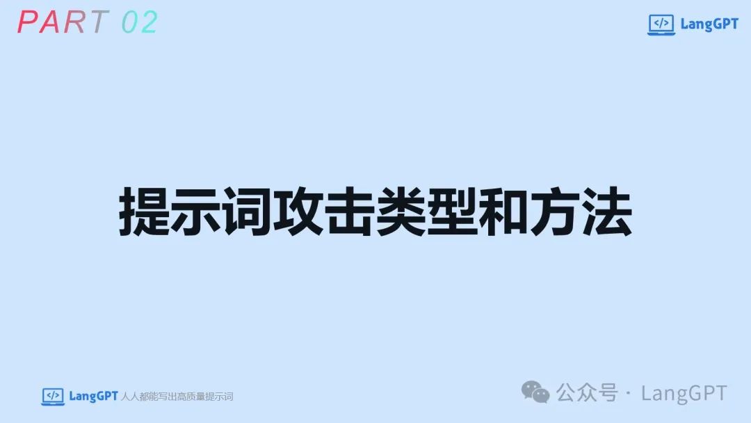 所以提示词这个攻击这个方面来说的话,有哪些常见的类型和方法呢?接下来我会给大家简单的梳理一下,可以分为下面三种。