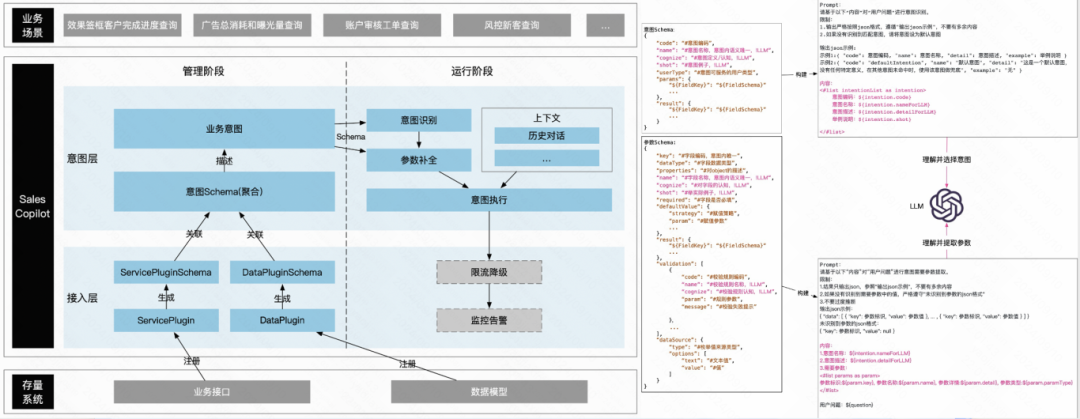 第二层是ChatHub层,它专注于智能客服场景,提供了一个可扩展的框架,用于集成并优化多种智能客服能力。这一设计既满足了当前业务需求,更为未来功能的拓展预留了充足空间。最上层则是业务应用层,它以租户为核心,实现了数据的个性化隔离与业务的灵活定制。每个租户都能在此层构建自己的专属应用,享受定制化的智能服务。而“一纵”则是指贯穿于整个架构的插件框架与多租户框架。这两个框架构成了SalesCopilot平台化的基石,它们不仅保障了系统的稳定性与可扩展性,还使得平台能够轻松应对多业务、多场景的挑战,为技术的长远发展奠定了基础。