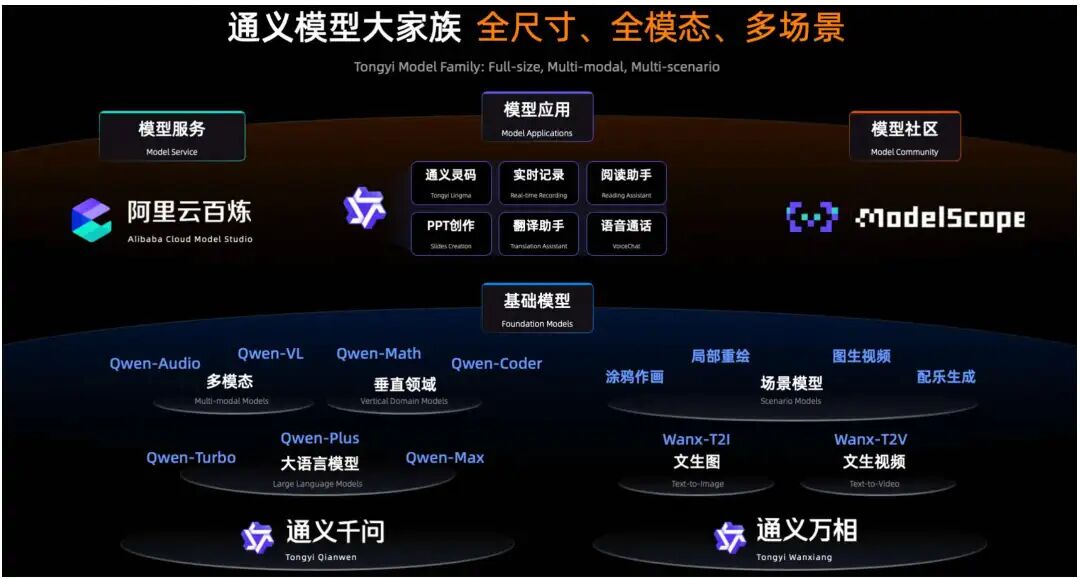 不论是大语言模型,还是视觉模型、代码模型、数学模型、音频模型等都有了较大的升级,阿里云的 Qwen 系列可以说一举撑起开源模型的半壁江山。