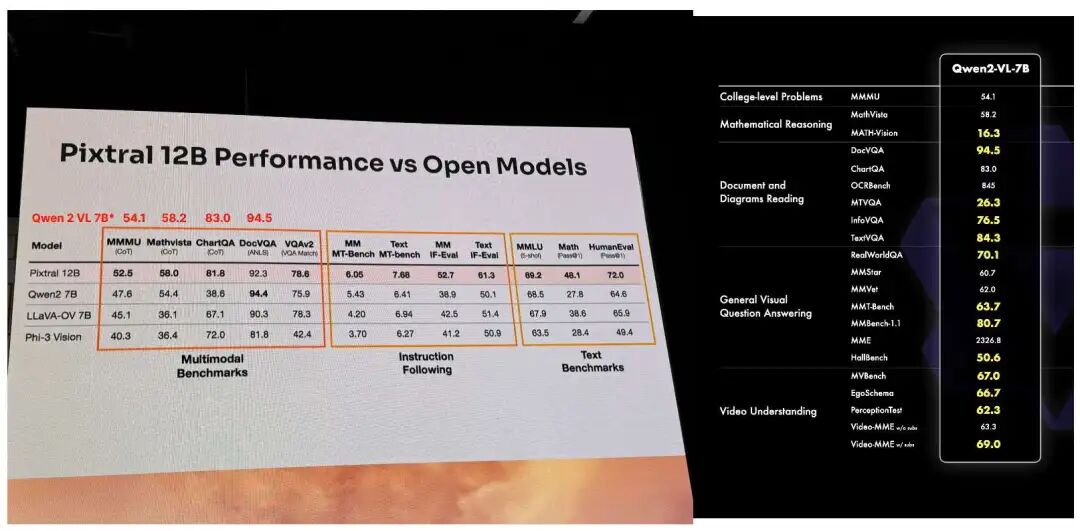 就在上周,法国的一家 AI 初创公司 Mistral AI 发布了首个多模态模型 Pixtral 12B,该模型在性能评测中就横向对比了 Qwen2-7B、LLaVA-OV 7B、Phi-3 Vision。