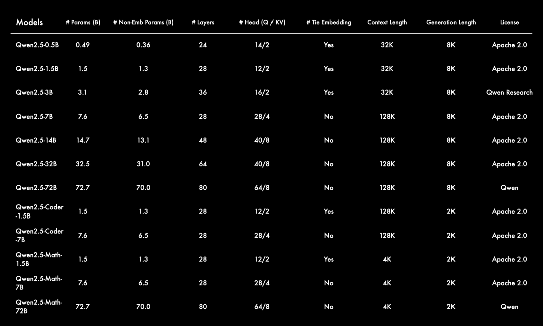 我简单罗列一下 Qwen 2.5 升级的内容: