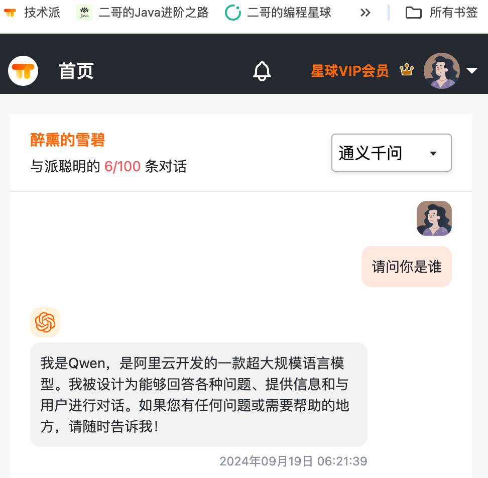 我在第一时间也把 Qwen 2.5 接入到了派聪明 AI 助手里,整个过程非常丝滑,代码已经完全提交到 GitHub 仓库。