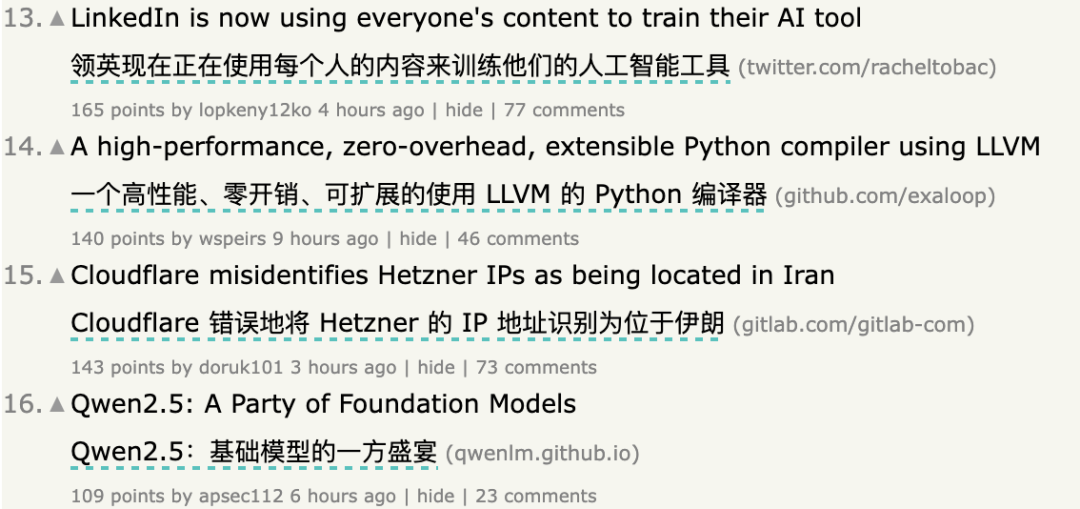 那经过这一两年的沉淀,国产大模型在规模和性能上的确有了崛起的势头,这是一件值得高兴的事情。我看 hacker news 上也有 Qwen 2.5 的讨论了,热度还挺高。