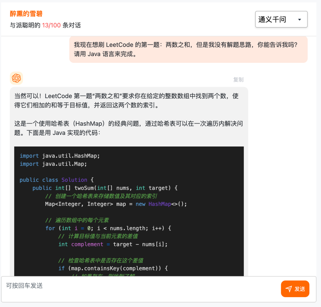 前面也提到了,Qwen 2.5 除了在语言模型的推理上增强了很多,在代码能力上也得到了极大增强,我们不妨来一道 LeetCode 题测试一下。