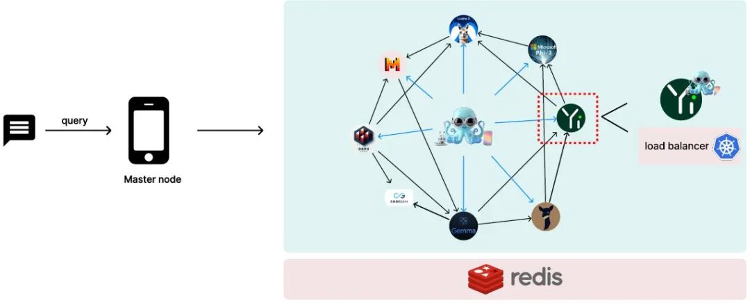 - 主节点(Octopus模型)负责协调查询,工作节点(专门模型)执行任务