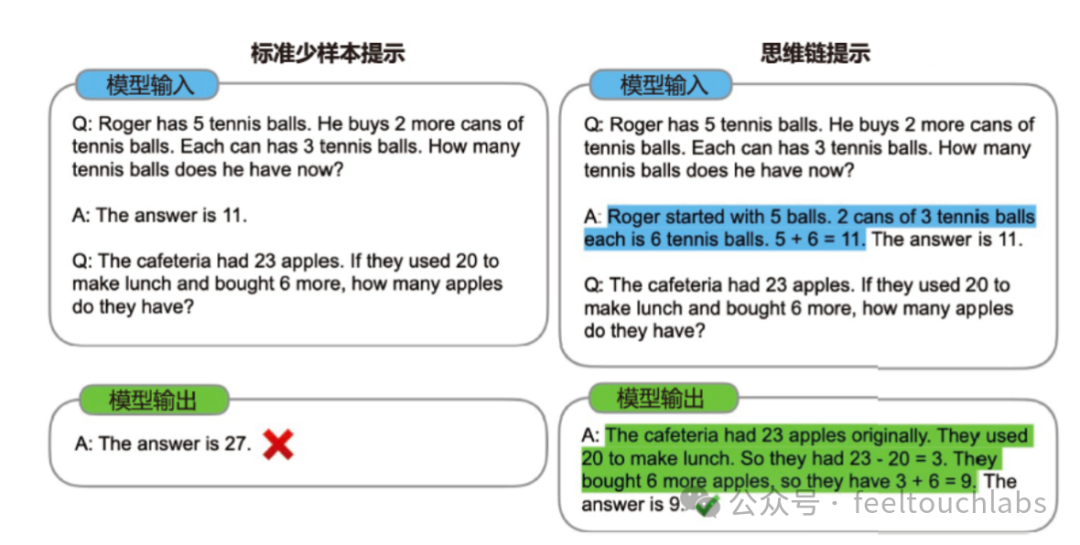 一、前言 以 ChatGPT 为代表的大语言模型在问题回答、文稿撰写、代码生成、数学解题等任务上展现出了强大的能力,引发了研究人员广泛思考如何利用这些模型开发各种类型的应用,并修正它们在推理能力、获取外部知识、使用工具及执行复杂任务等方面的不足。此外,研究人员还致力于如何将文本、图像、视频、音频等多种信息结合起来,实现多模态大模型,这也成了一个热门研究领域。鉴于大语言模型的参数量庞大,以及针对每个输入的计算时间较长,优化模型在推理阶段的执行速度和用户响应时长也变得至关重要。 二、推理规划随着语言模型规模的不断扩大,其也具备了丰富的知识和强大的语境学习能力。然而,仅仅通过扩大语言模型的规模,并不能显著提升推理(Reasoning)能力,如常识推理、逻辑推理、数学推理等。通过示例(Demonstrations)或者明确指导模型在面对问题时如何逐步思考,促使模型在得出最终答案之前生成中间的推理步骤,可以显著提升其在推理任务上的表现。这种方法被称为思维链提示(Chain-of-Thought Prompting) 同样地,面对复杂任务或问题时,大语言模型可以展现出良好的规划(Planning)能力。通过引导模型首先将复杂的问题分解为多个较为简单的子问题,然后逐一解决这些子问题,可使模型得出最终解答,这种策略被称为由少至多提示(Least-to-Most Prompting) 2.1 思维链提示(Chain-of-Thought Prompting)语言模型在推理能力方面的表现一直未能令人满意,一些研究人员认为这可能是因为此前的模式是直接让模型输出结果,而忽略了其中的思考过程。人类在解决包括数学应用题在内的、涉及多步推理的问题时,通常会逐步书写整个解题过程的中间步骤,最终得出答案。如果明确告知模型先输出中间的推理步骤,再根据生成的步骤得出答案,是否能够提升其推理表现呢?针对这个问题,Google Brain 的研究人员提出了思维链(Chain-of-Thought,CoT)提示方式,除了将问题输入模型,还将类似题目的解题思路和步骤输入模型,使得模型不仅输出最终结果,还输出中间步骤,从而提升模型的推理能力。研究人员甚至提出了零样本思维链(Zero-shot Chain-of-Thought,Zero-shot CoT)提示方式,只需要简单地告知模型“让我们一步一步思考(Let’s thinkstep by step)”,模型就能够自动输出中间步骤。思维链提示(Chain-of-Thought Prompting)方式如图所示,标准少样本提示(StandardFew-shot Prompting)技术在给模型的输入里面提供了 k 个[问题,答案] 对,以及当前问题,由模型输出答案。