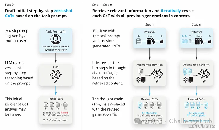 - 增强修订:这指的是 LLM 如何根据检索到的信息和先前的解释来完善其思维链 (