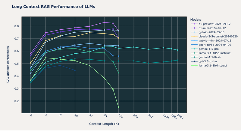 要想正确率超过 80 %,RAG 得向 OpenAI 的 o1 模型发送 64K 字符的文本片段。其他模型,包括 GPT-4o、GPT-4 Turbo 和 Claude-3.5 Sonnet,无一达到这一标准。但 o1 模型的结果问题重重。