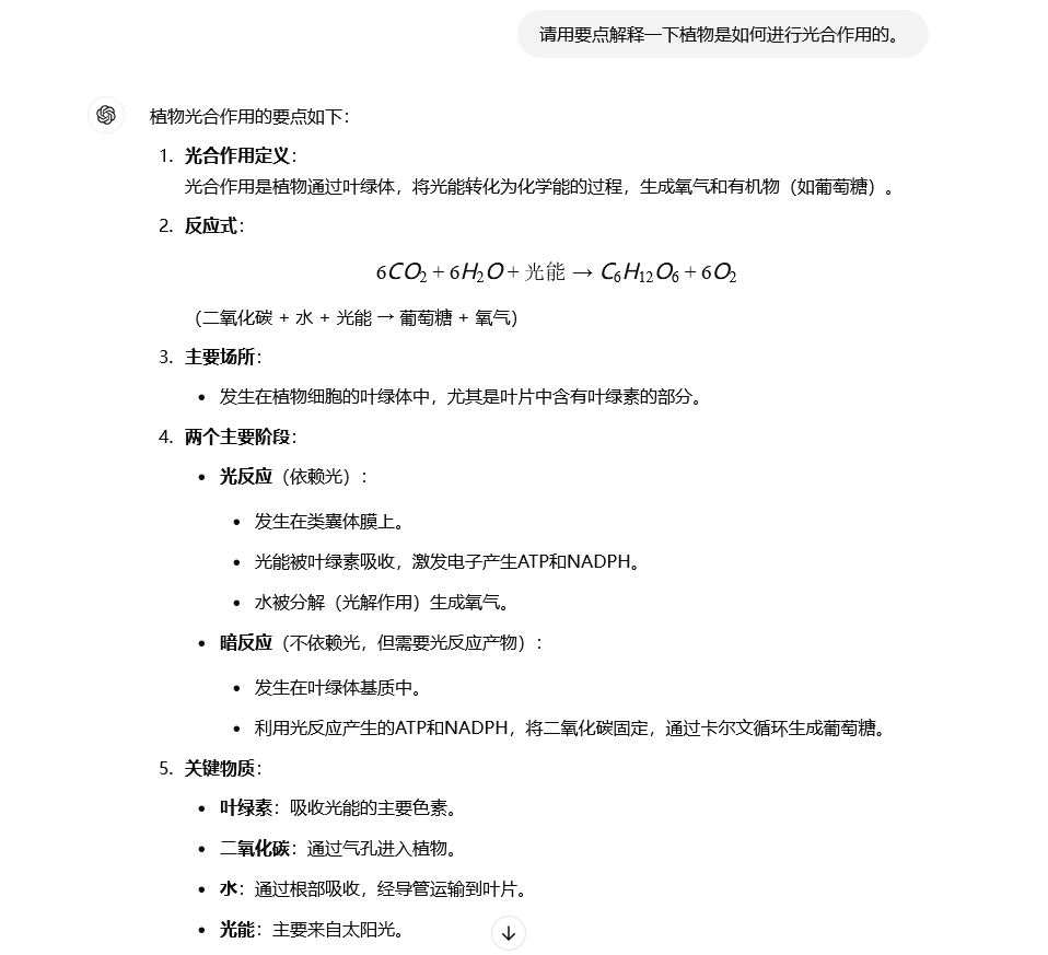例如,不要说“我想知道你是否可以为我讲解一下光合作用的复杂过程”,这听起来啰嗦又不清楚。你可以直接问:“请用要点解释一下植物是如何进行光合作用的。” 简单明了,效果更好!