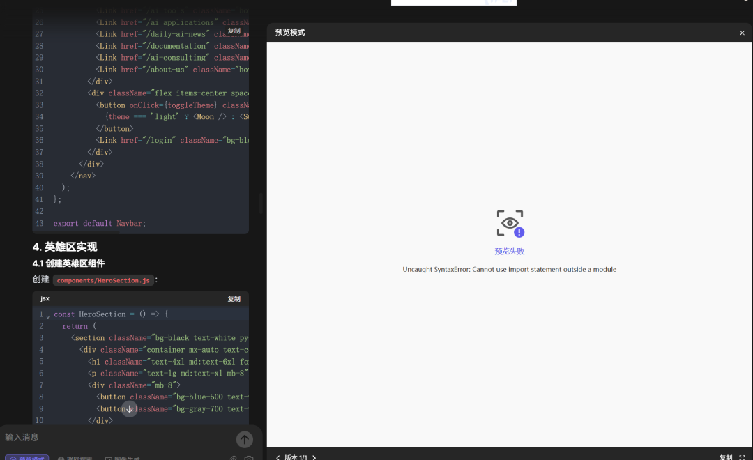 他还标明了各种模型,适用的子处理任务,并且同一个对话支持切换不同的模型。 QwQ-32B-Preview 能够进行长链条思维推理,尤其擅长编程、数学和简单的逻辑推理。QVQ-72B-Preview 能够在视觉背景下进行深度思考。Qwen2.5-Coder-32B-Instruct 在编码方面表现出色,达到了顶级水平。Qwen2.5-Turbo 能够完成常见的语言任务,如摘要生成、翻译、改写、阅读理解等。值得注意的是,它支持最长可达 100 万个 token 的超长上下文。发送指令时,还能开启“Artifacts”功能,立即查看已生成的 HTML、CSS、JS 预览,这对编程特别友好。我做了个小测验,用 Qwen 2.5 Plus 模型来生成一个简单的博客页面。 继续测试,我们用前面写过一篇文章《从0到1用AI做了个AI服务网站, 全程没写一行代码》,把开头的那个三合一提示词扔给他,让他创建一个Saas网站原型。那么提示词比较长,可以通过上面这篇文章获得。