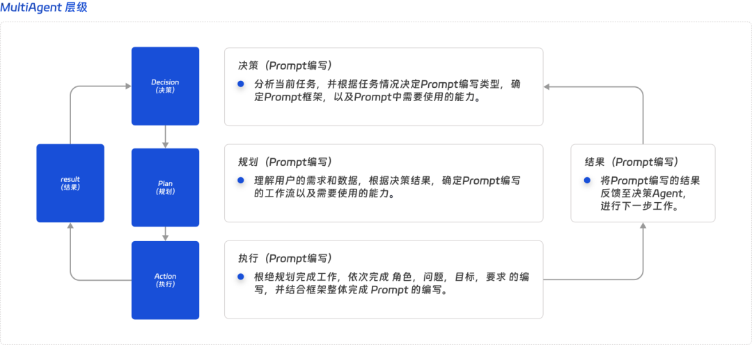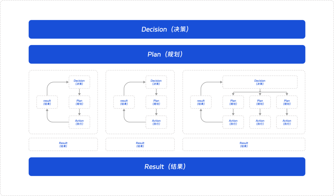 - Result 结果:负责汇集执行层的结果并反馈至决策层,作为决策层下一步工作的主要输入。