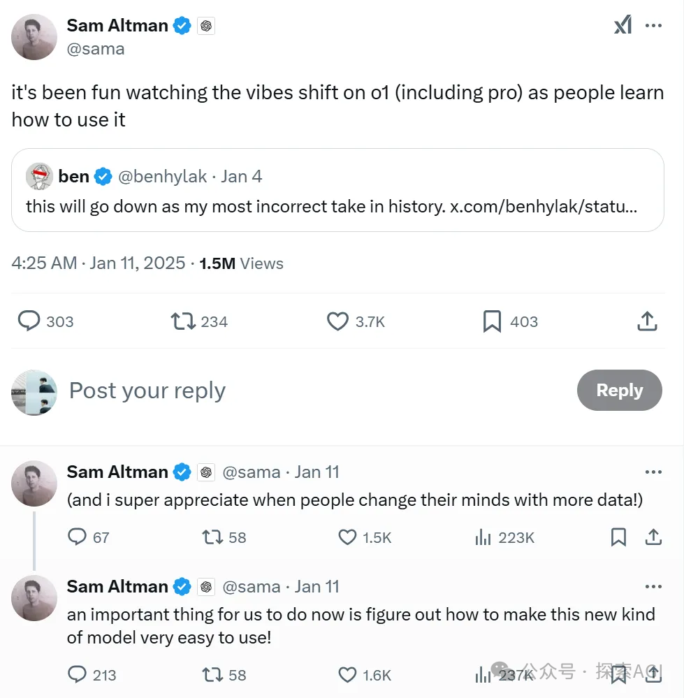 甚至Altman也出来留言了,表示看到这个转变,真有意思~