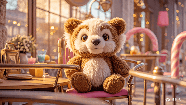小熊从椅子上走下来的动作很自然,也很自然的越过了椅子的栏杆,其中小熊整体的形态都很稳定,背景也没有发生畸变。