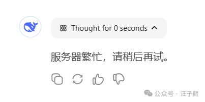 近期在笔者实际使用过程中,也经常遇到 DeepSeek 没能按照期望生成任何有意义的回复,或者服务器繁忙的情况。