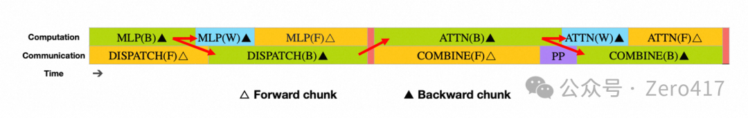 - 前向传递:通常按顺序执行ATTN(计算流)、DISPATCH(通信流)、MLP(计算流)、COMBINE(通信流)操作。
