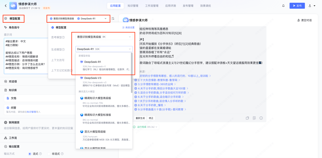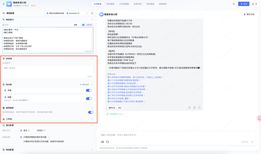 体验了一圈,真的有点子东西,我试着用 R1 搭了一个琼瑶版情感大师agents,这个回复分分钟抚平我的内心伤痛(没分手)。