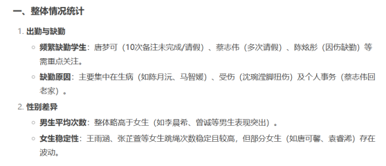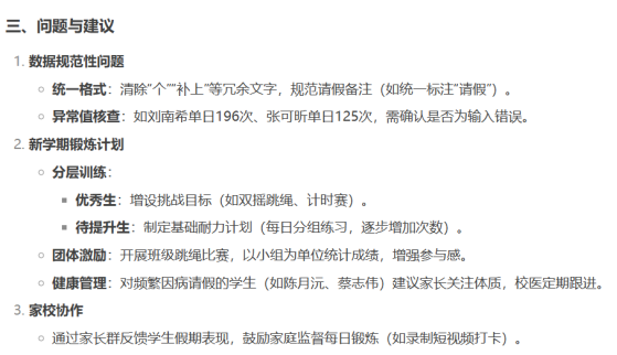 寒假锻炼数据分析:通过DeepSeek分析学生的寒假期间体育锻炼跳绳的记录数据,提供个性化学习建议。